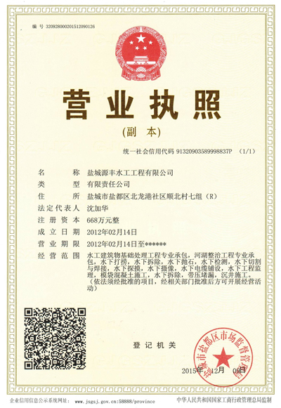 鹽城源豐水工工程有限公司是一家專(zhuān)業(yè)從事水下作業(yè)的股份制企業(yè),公司多年以來(lái),堅(jiān)持以人為本,誠(chéng)信經(jīng)營(yíng),憑借質(zhì)量、效率、信譽(yù)的作風(fēng)贏得客戶(hù)的信賴(lài)和贊譽(yù)。